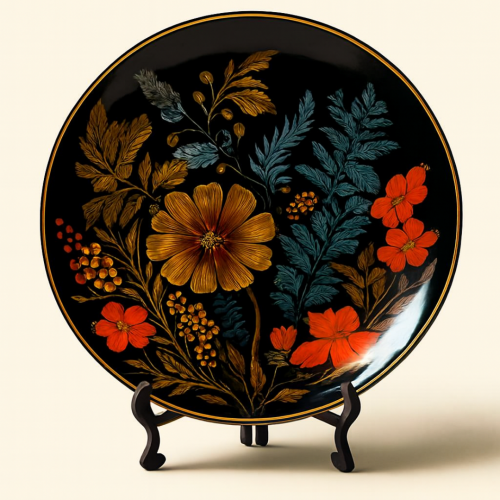 Midnight Botanical – captures the quiet magic of nature under moonlight—where blossoms unfurl in shadow and leaves whisper in stillness. The artwork evokes mystery, renewal, and the beauty of nocturnal calm, inviting serenity into any space. The ceramic surface glows with a smooth matte finish, cool to the touch yet luminous, grounding the scene in elegance and soulful depth.