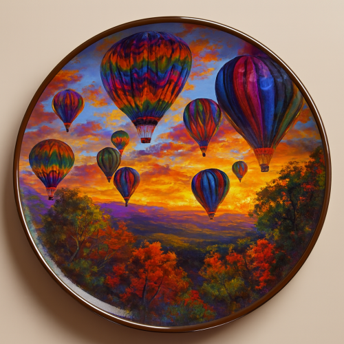 A dreamy sky filled with vibrant hot air balloons at sunset.