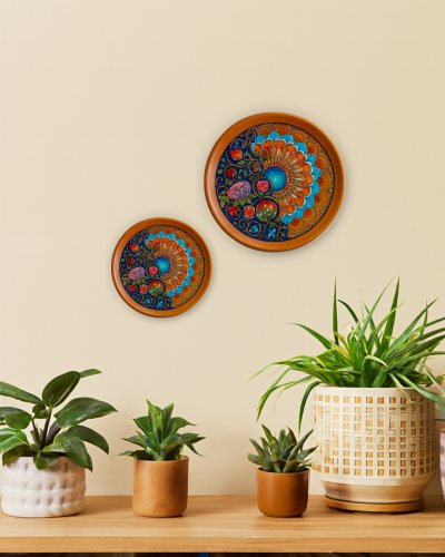 Its bold palette and hand-crafted detailing make it a striking centerpiece for any wall or shelf décor.